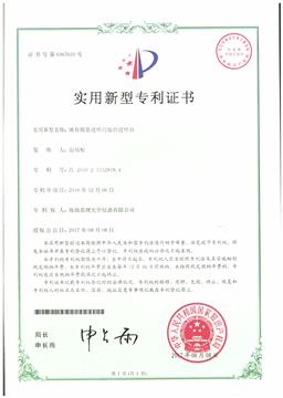 专利证书:一种带斜置梯形窗口的激光粒度仪201720195784.7