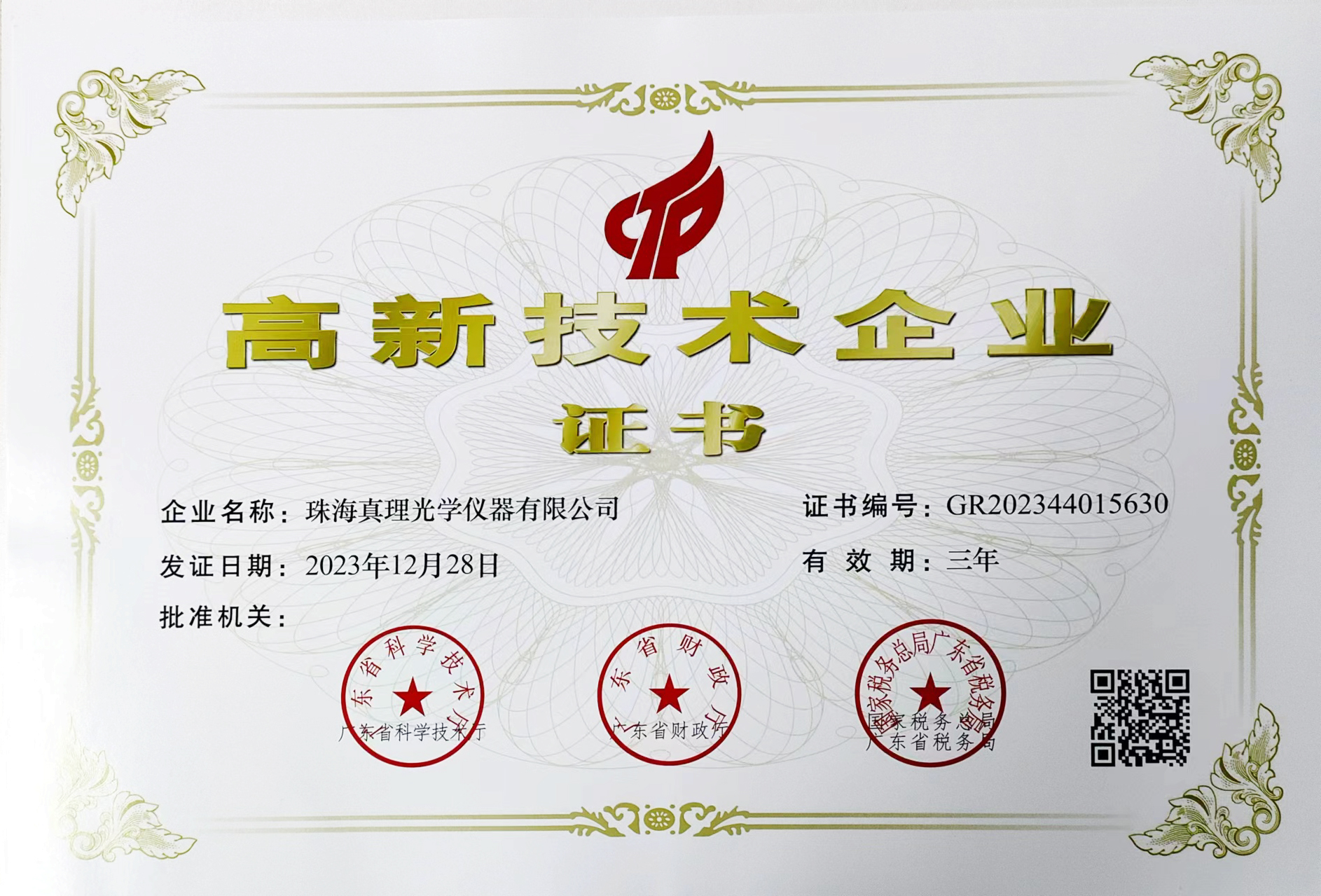 广东省高新技术企业荣誉证书